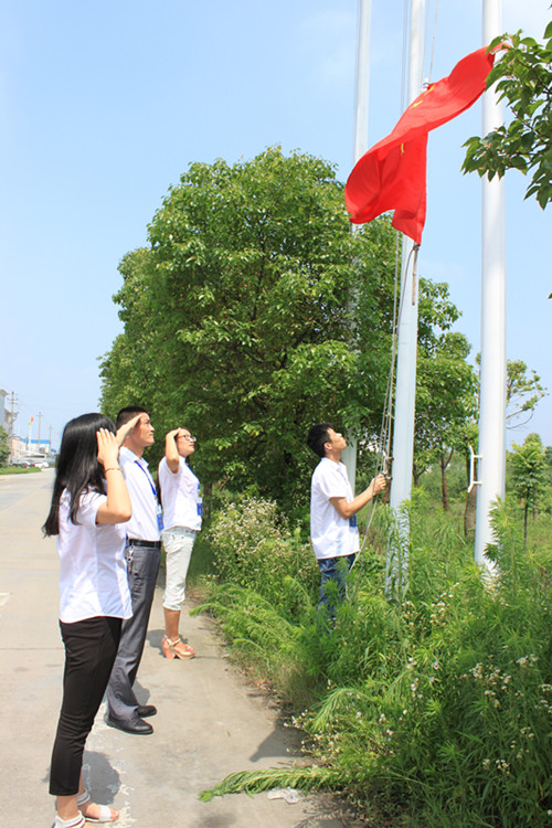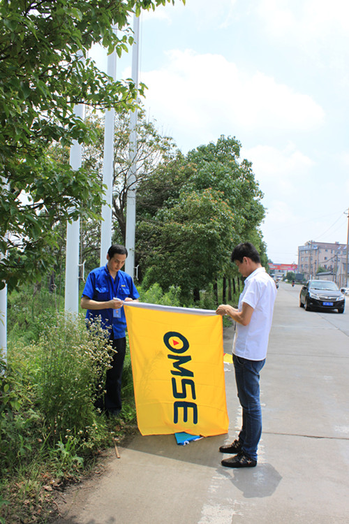 崭新的旗子在微风中迎风飘扬,将鼓舞着全体奥玛斯人同心协力,面向下半年的辉煌奋力前进!