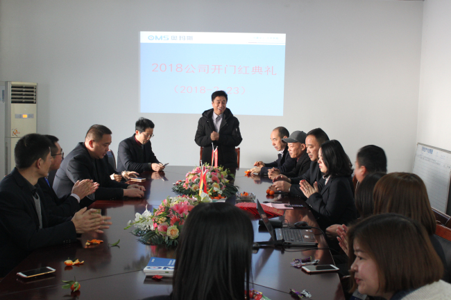 正月初八上午9时零8分,奥玛斯2018新春开门红典礼在鞭炮声中开启